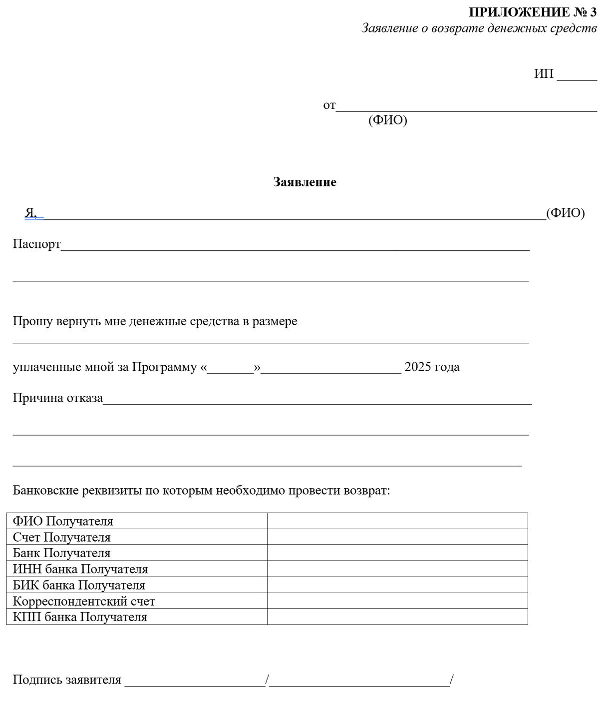 11.15.3.ПРИЛОЖЕНИЕ № 3 Заявление о возврате денежных средств