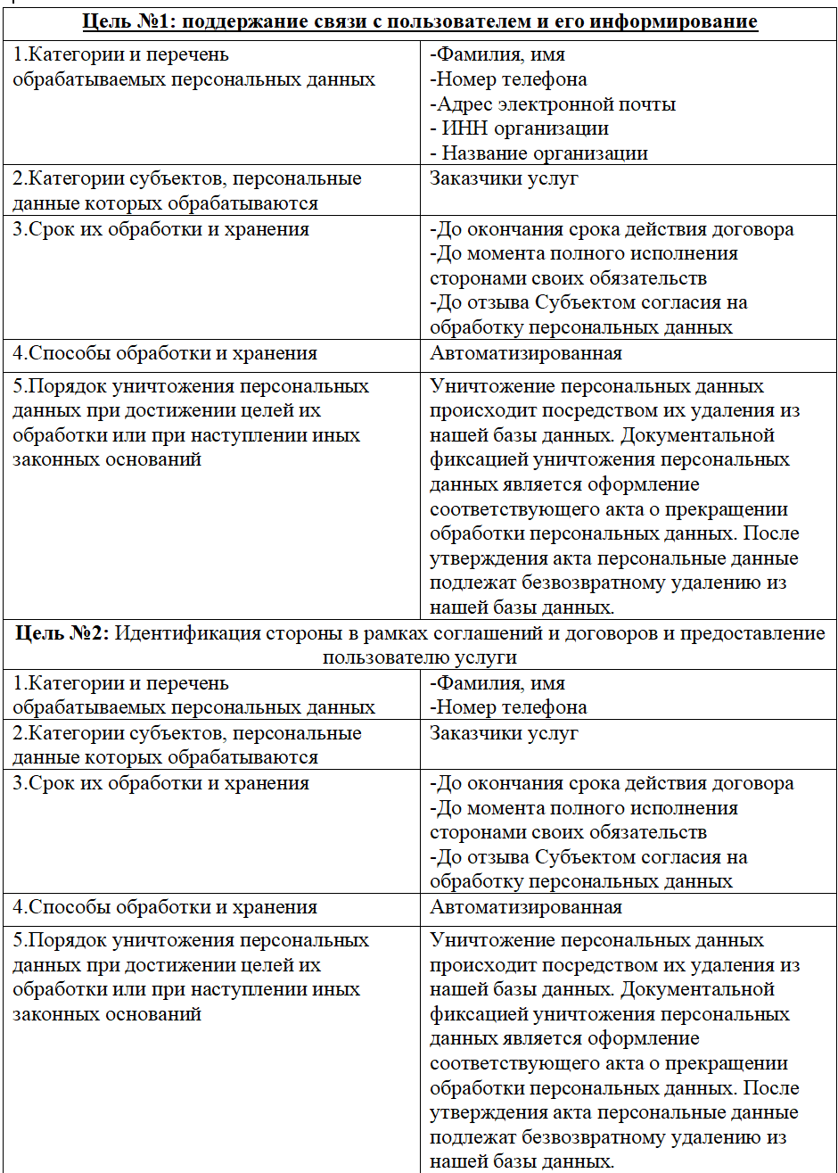 Статья 2. ЦЕЛИ СБОРА И ОБРАБОТКИ ПЕРСОНАЛЬНОЙ ИНФОРМАЦИИ ПОЛЬЗОВАТЕЛЕЙ